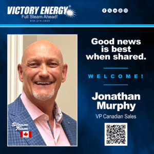 “The ability of our Rep partners to focus sales efforts on the entire Victory Energy product portfolio is an approach that we look to build on going forward. This allows for a greater share of sales coverage for Victory Energy while providing Reps with increased sales opportunities,” remarked Gary Persichini, Vice President, Industrial Sales.